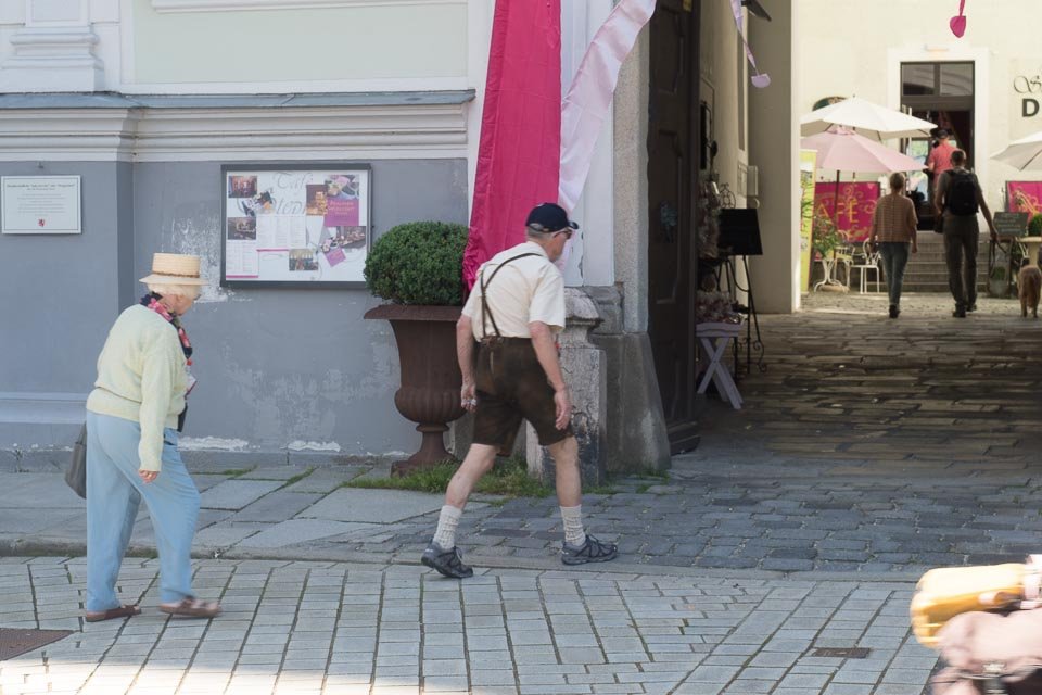 Lederhosen, I had to get a picture of lederhosen. Finally, I spotted this elderly gent . . .