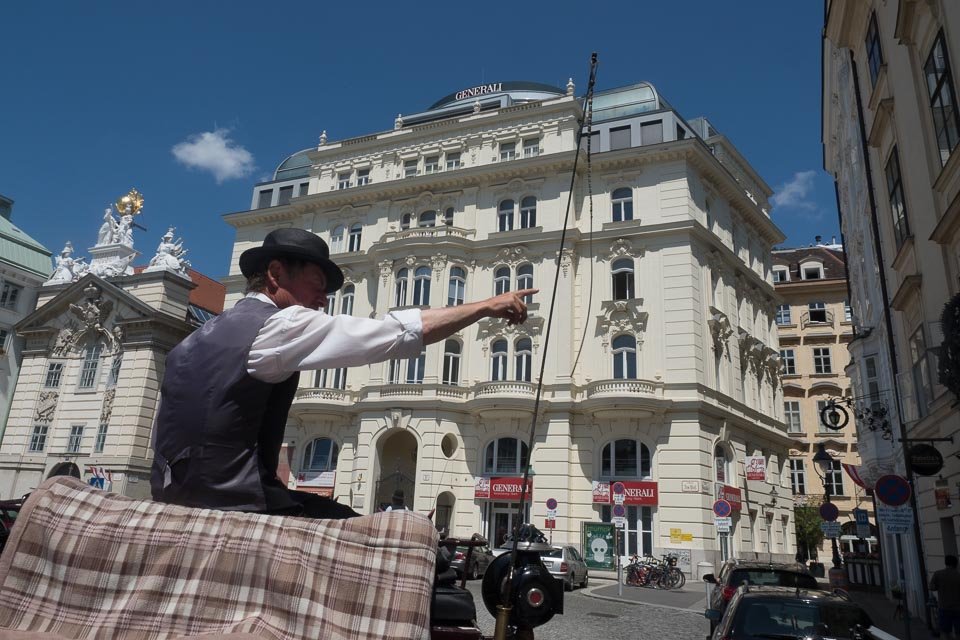 Here's the lady in her carriage. You are in Vienna, you have to take a carriage ride. It's a bucket list thing. However, what I failed to realize was that this beautiful carriage without any springs is going to be traversing cobblestone streets! Our teeth chattered for a half hour.