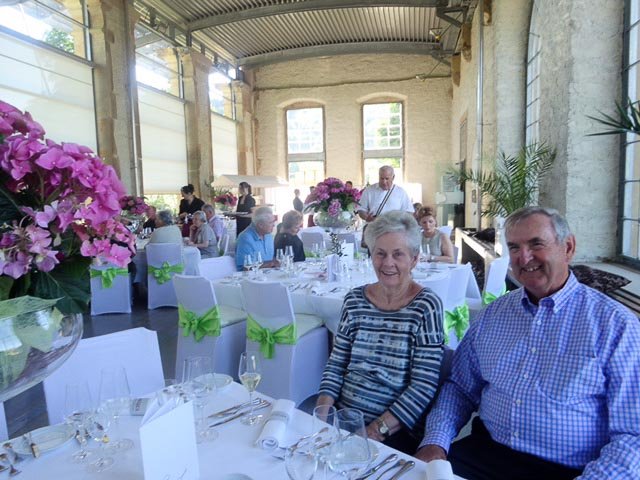 Enjoying dinner in the orangerie. Quite an impressive place.