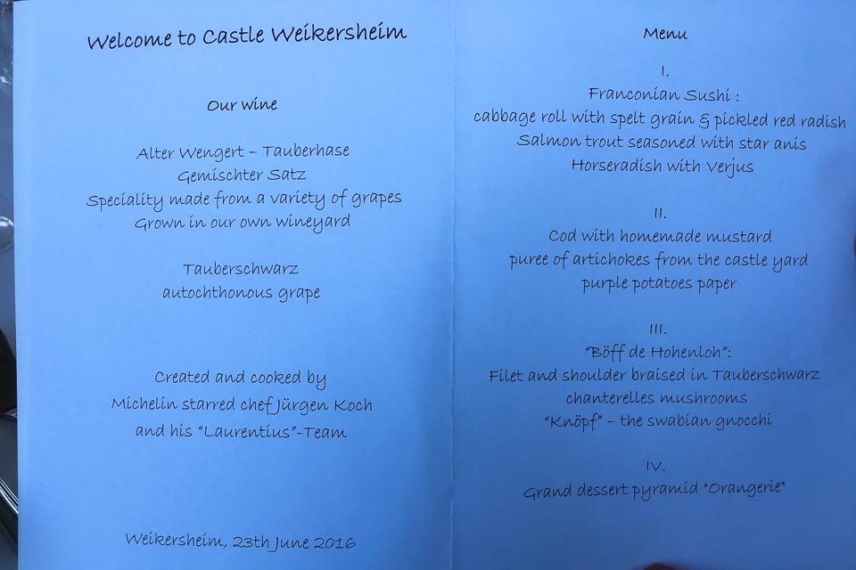 Our chef was Michelin starred chef Jürgen Koch and here you see his offerings.
